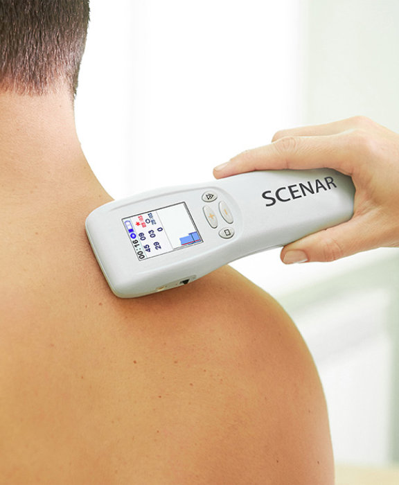 De SCENAR therapie is een combinatie van pijnbestrijding, herstel en energiebevordering. Met zijn ongevaarlijke elektrische impulsen werkt de Scenar via de huid op het zenuwstelsel en bevordert de productie van stoffen, die de cellen en organen nodig hebben om goed te kunnen functioneren. Deze therapie is een van de meest succesvolle therapieën ter wereld.